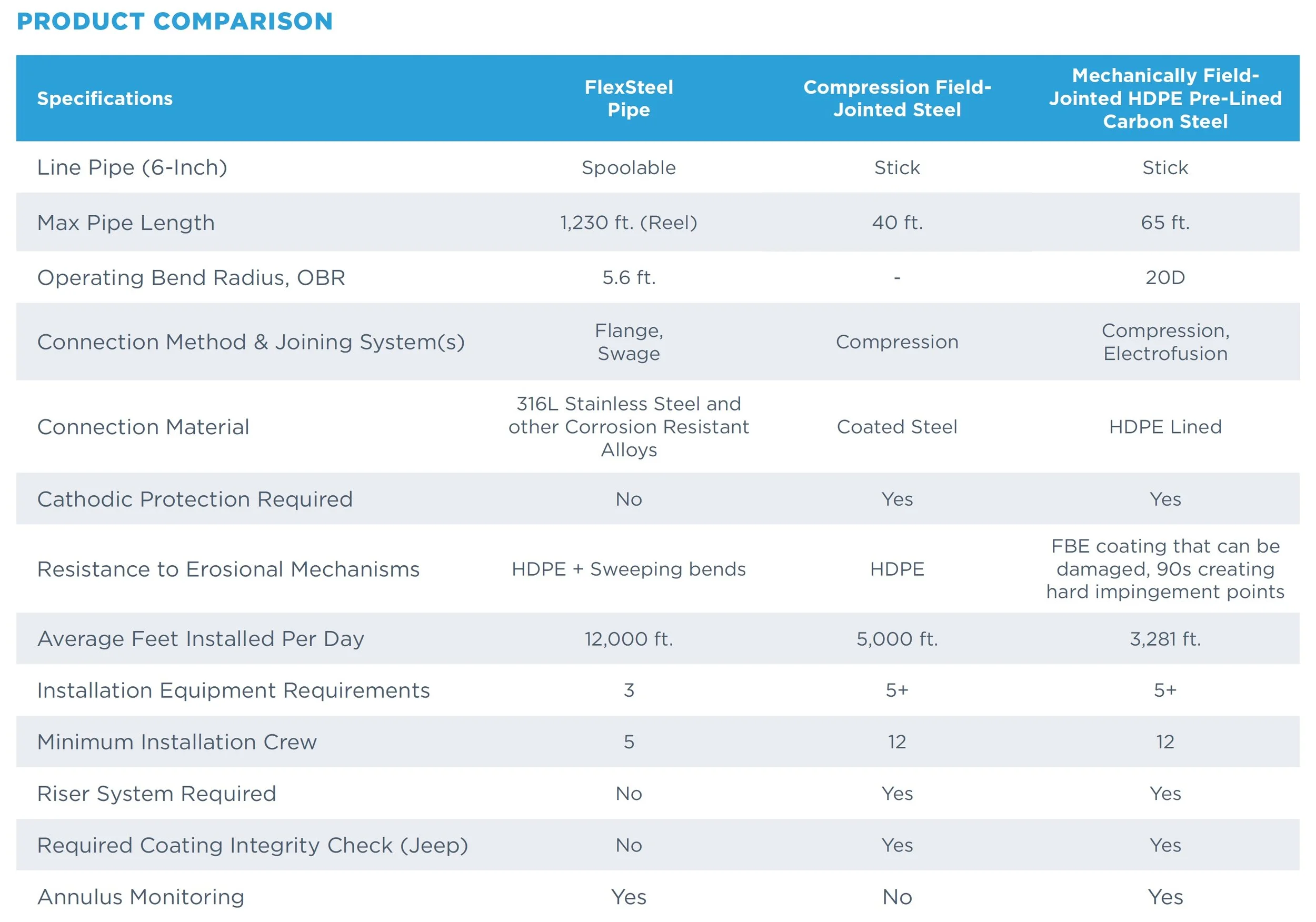 Along with providing pipe, FlexSteel worked with the operator to devise a seamless and safe deployment plan. The FlexSteel team initiated a critical onboarding meeting between the operator and construction company as part of the deployment plan. This ensured best practices were followed and the stated value for the FlexSteel pipe installations was recognized.